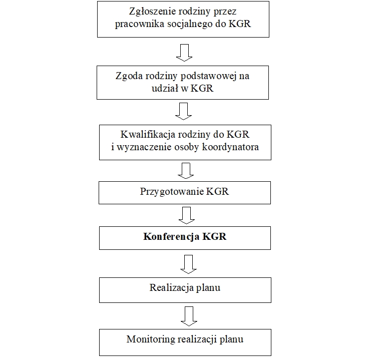 Zdecydowana większość respondentów z pierwszego kryterium stażu pracy wskazało na zmianę mentalności profesjonalistów, natomiast w drugim kryterium stażu pracy również wskazano na ten czynnik oraz na inne. Najmniej osób w pierwszym kryterium wskazało na nowe narzędzie pracy, czyli pracę na zasobach rodziny, natomiast w drugim kryterium stażu pracy najmniej osób wskazało wzmocnienie współpracy między profesjonalistami a rodzinami (większe zaangażowanie obu stron, mobilizacja). Młodsze stażem osoby dostrzegają przede wszystkim potrzebę zmiany myślenia wśród własnej specjalizacji, natomiast osoby z większym stażem pracy wachlarz wpływu KGR na profesjonalistów znacznie poszerzają o dodatkowe czynniki takie jak poczucie, że dało się rodzinie szansę, możliwość zdobycia doświadczenia, pomoc w realizacji zadań oraz integrację na rzecz społeczności lokalnej. Zmiana mentalności pracowników, z myślenia, że ponoszą odpowiedzialność za losy rodziny, że mogą decydować o jej losie, brak zaufania do jej członków na myślenie w przeciwnym kierunku, niweluje znacznie syndrom wypalenia zawodowego, a zatem większej efektywności ich pracy.
